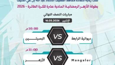 تتجه الأنظار مساء اليوم إلى مباريات الدور نصف النهائي من بطولة الأزهر الرمضانية الحادية عشرة للكرة الطائرة 2026، المقامة تحت رعاية سعادة محافظ…