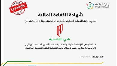 القادسية يحصل على شهادة الكفاءة المالية